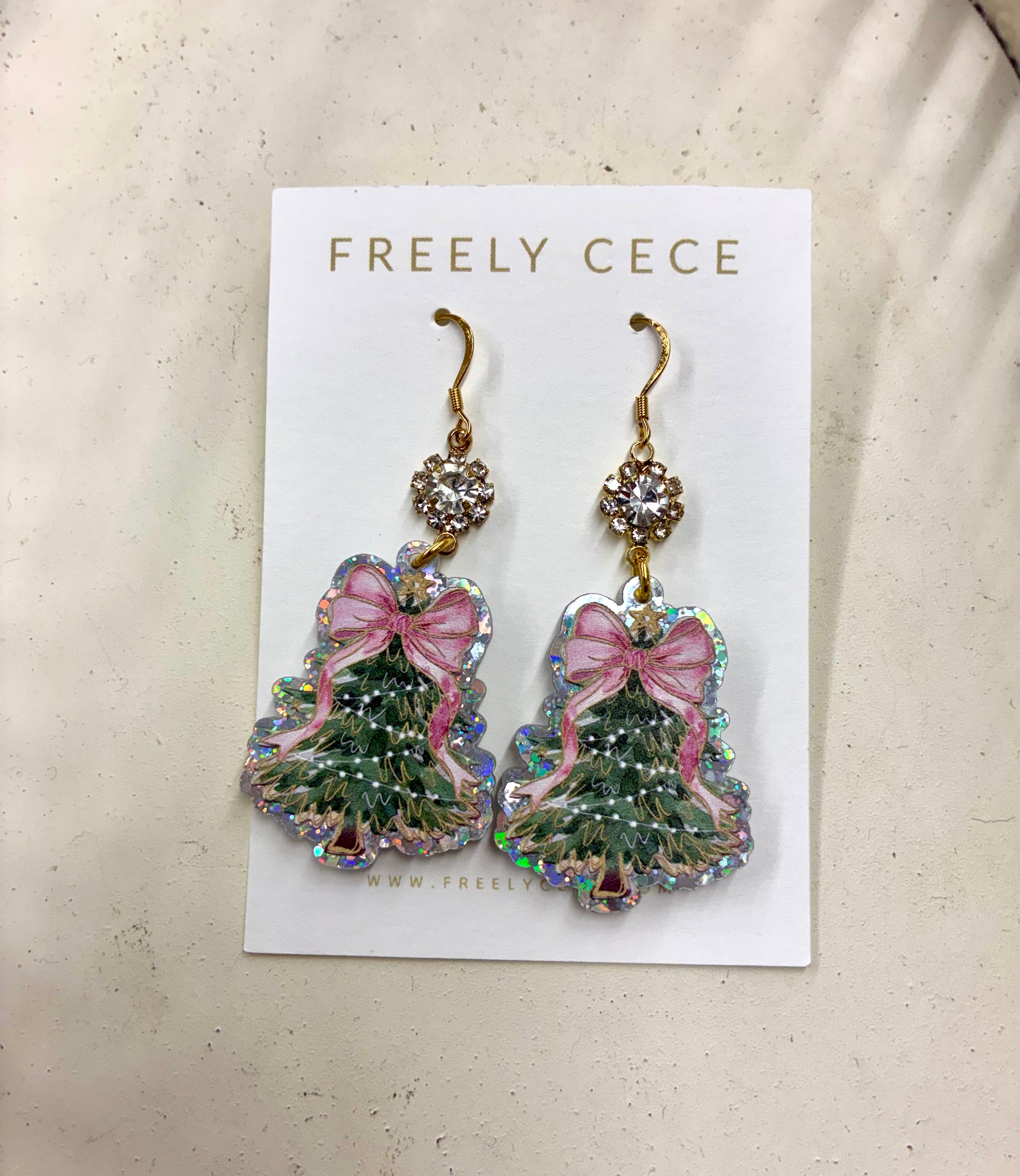 Christmas Tree & Rhinestone Earrings