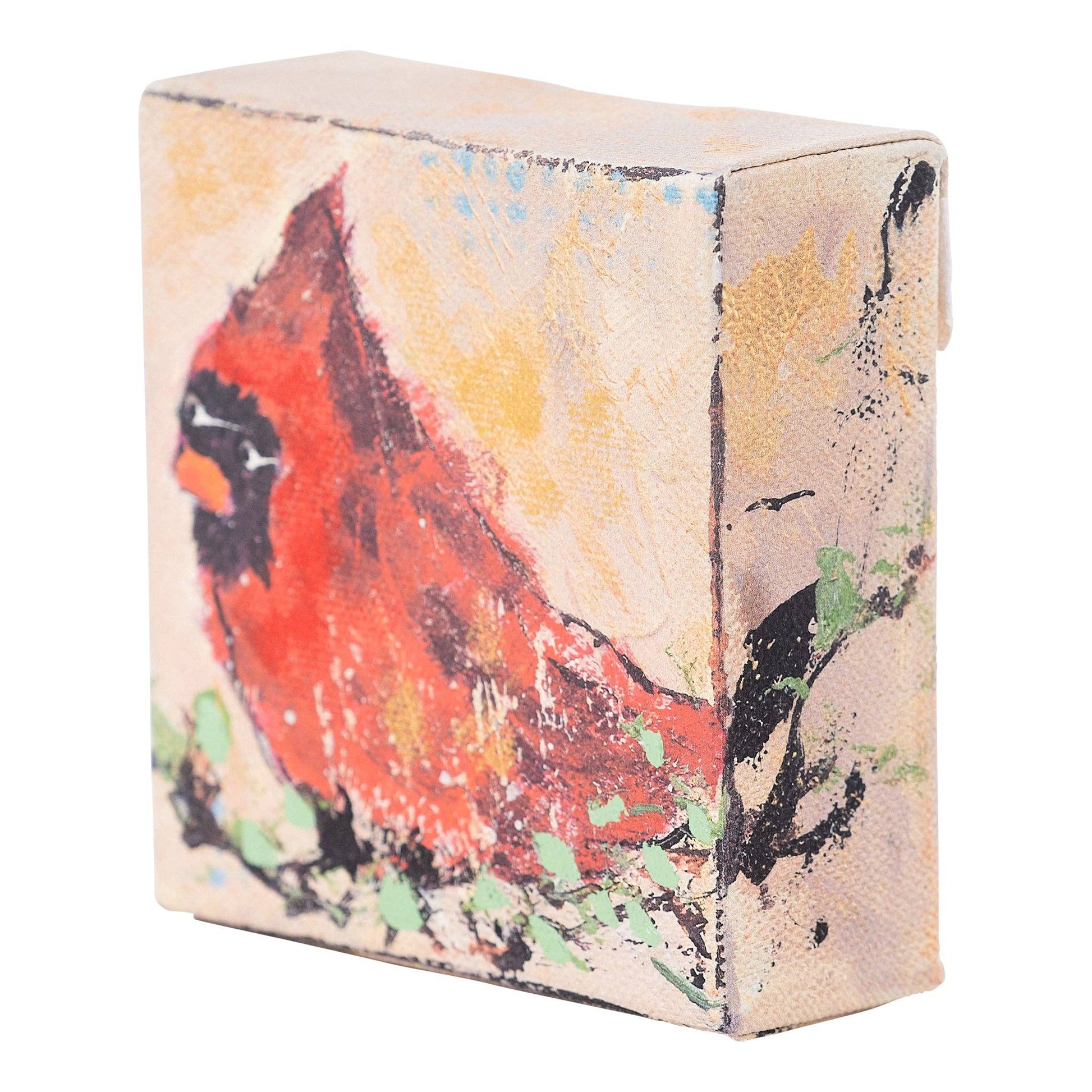 Elevate your home decor with our beautiful hand-painted design on canvas featuring a red bird perched on holly branches. This small canvas is perfect for adding a little touch of nature to your home or office. This sweet cardinal is a caring sentiment of remembrance for our loved ones we miss. This canvas given as a gift is a cherished token of love even if from a distance.